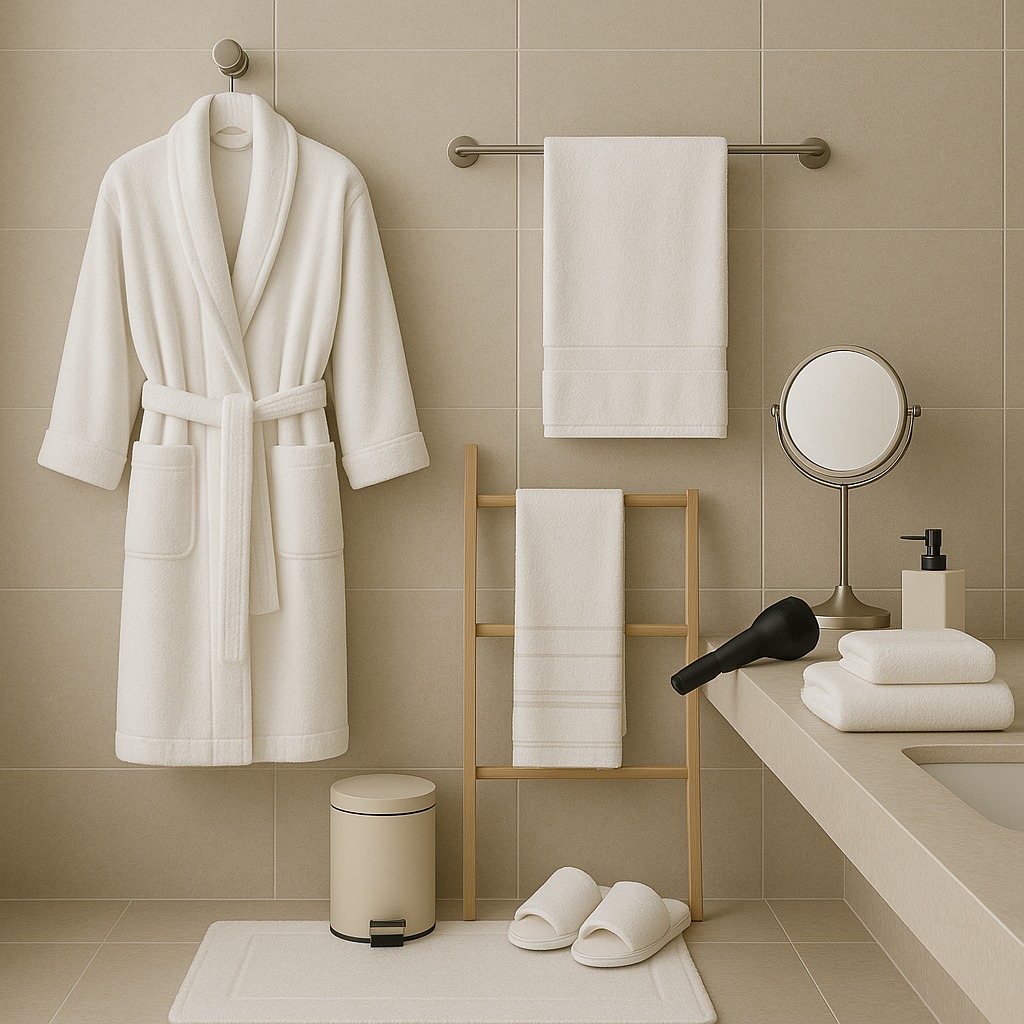 •Fön makinesi, makyaj aynası, çöp kovası, banyo bardağı ve terlik gibi tamamlayıcı ekipmanlar